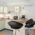 Az apartman szobái tornácot, ülősarkot és TV-t foglalnak magukba, továbbá egy nyitott belső udvart. Van egy konyha és egy fürdőszoba fürdőkáddal és zuhanyzóval.